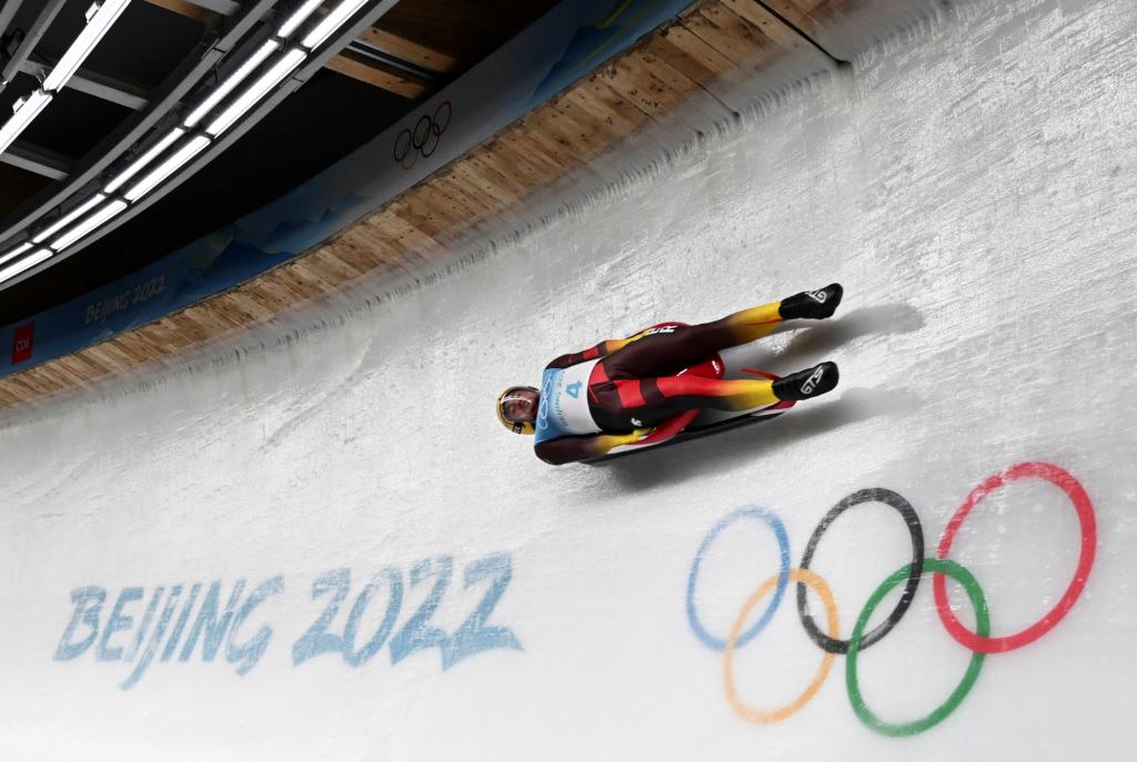 2月5日,德國選手約翰內(nèi)斯·路德維希在北京2022年冬奧會男子單人雪橇項目比賽中。新華社記者 賀長山 攝