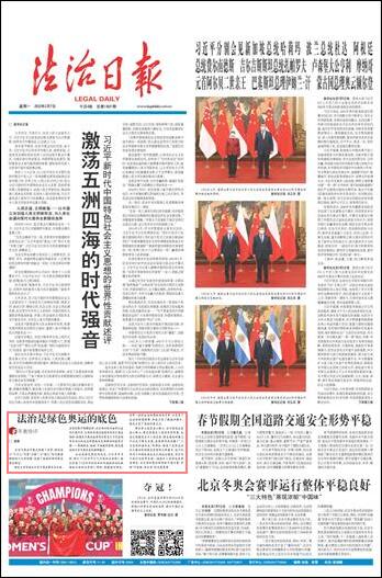 綠水青山就是金山銀山,冰天雪地也是金山銀山。綠色家園是人類的共同夢(mèng)想,生態(tài)文明建設(shè)關(guān)乎人類未來(lái)。綠色奧運(yùn)的意義不僅在于綠色辦奧,更重要的是傳播了“人與自然和諧共生”的理念,彰顯了運(yùn)用法治方式推動(dòng)實(shí)現(xiàn)綠色夢(mèng)想的無(wú)限潛力,這不僅有利于加強(qiáng)我國(guó)生態(tài)文明法治建設(shè),更有利于我們與世界各國(guó)一道踐行人類命運(yùn)共同體理念,為全球環(huán)境治理貢獻(xiàn)中國(guó)方案,實(shí)現(xiàn)“可持續(xù)、向未來(lái)”的發(fā)展愿景。