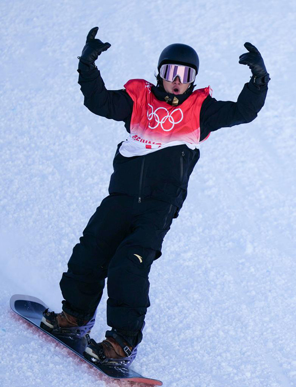 2月6日,中國(guó)選手蘇翊鳴在比賽中。當(dāng)日,北京2022年冬奧會(huì)單板滑雪項(xiàng)目男子坡面障礙技巧資格賽在張家口云頂滑雪公園舉行。新華社記者薛玉斌攝