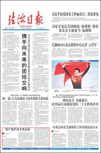 綜合運(yùn)用法律、行政、技術(shù)、社會(huì)治理等手段,對(duì)涉奧知識(shí)產(chǎn)權(quán)予以全方位、立體化的保護(hù),不僅為冬奧盛會(huì)的舉辦營(yíng)造了良好氛圍,也切實(shí)增強(qiáng)了全社會(huì)保護(hù)知識(shí)產(chǎn)權(quán)的意識(shí)和自覺(jué)性。相信強(qiáng)有力的知識(shí)產(chǎn)權(quán)保護(hù)舉措,一定會(huì)為北京冬奧會(huì)的成功舉辦增色添彩。