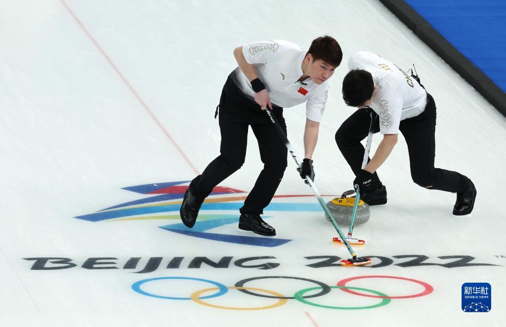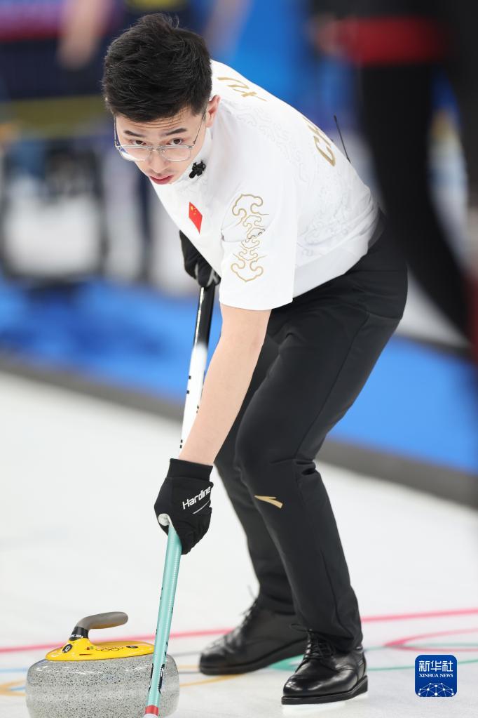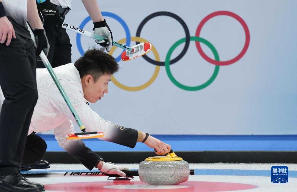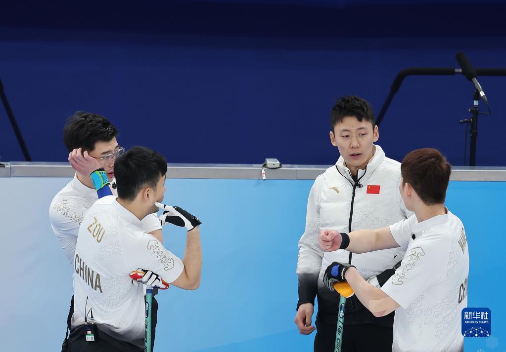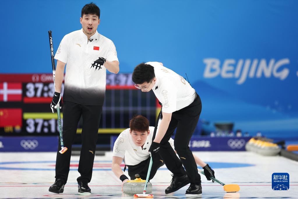 當(dāng)日,在北京國家游泳中心“冰立方”舉行的北京2022年冬奧會(huì)冰壺男子循環(huán)賽中,中國隊(duì)以5比4戰(zhàn)勝丹麥隊(duì)。