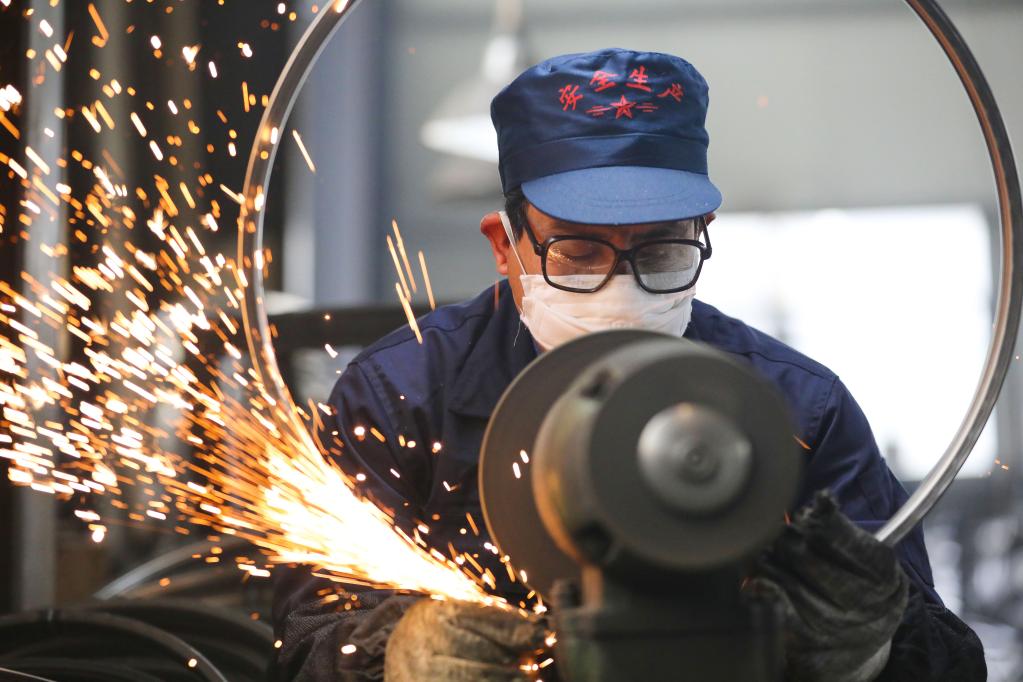 2月7日,在山東煙臺(tái)一家工程機(jī)械生產(chǎn)企業(yè),工人在生產(chǎn)車間內(nèi)忙碌。新華社發(fā)(唐克攝)