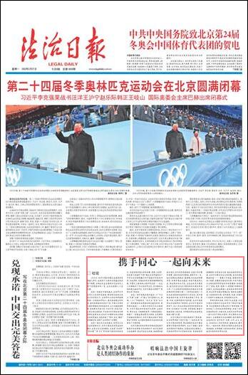 北京冬奧會(huì)為中國(guó)發(fā)展提供了新機(jī)遇,也為世界貢獻(xiàn)了更多可能?!耙黄鹣蛭磥?lái)”是北京冬奧會(huì)的愿景,簡(jiǎn)潔凝練的表述中蘊(yùn)含著博大智慧和深厚情懷,發(fā)出了構(gòu)建人類(lèi)命運(yùn)共同體的中國(guó)倡議。各國(guó)運(yùn)動(dòng)員在賽場(chǎng)上,呈現(xiàn)給世界的不僅有挑戰(zhàn)自我、突破極限的拼搏精神,還有相互支持、彼此成就的美好友誼。在對(duì)手比賽失利后主動(dòng)安慰、成功后真誠(chéng)擁抱祝?!荒荒恍氖窒噙B、情意相牽的動(dòng)人場(chǎng)景,在瞬間定格成為永恒。北京冬奧會(huì)以全球共通的體育語(yǔ)言和體育精神,積極踐行了“更快、更高、更強(qiáng)——更團(tuán)結(jié)”的奧林匹克格言,生動(dòng)地詮釋著人類(lèi)命運(yùn)共同體的理念,向全世界傳遞出明確信息:奧林匹克精神是人類(lèi)團(tuán)結(jié)的燈塔,任何國(guó)家、民族、宗教的人民都可以超越分歧,實(shí)現(xiàn)團(tuán)結(jié)與合作。