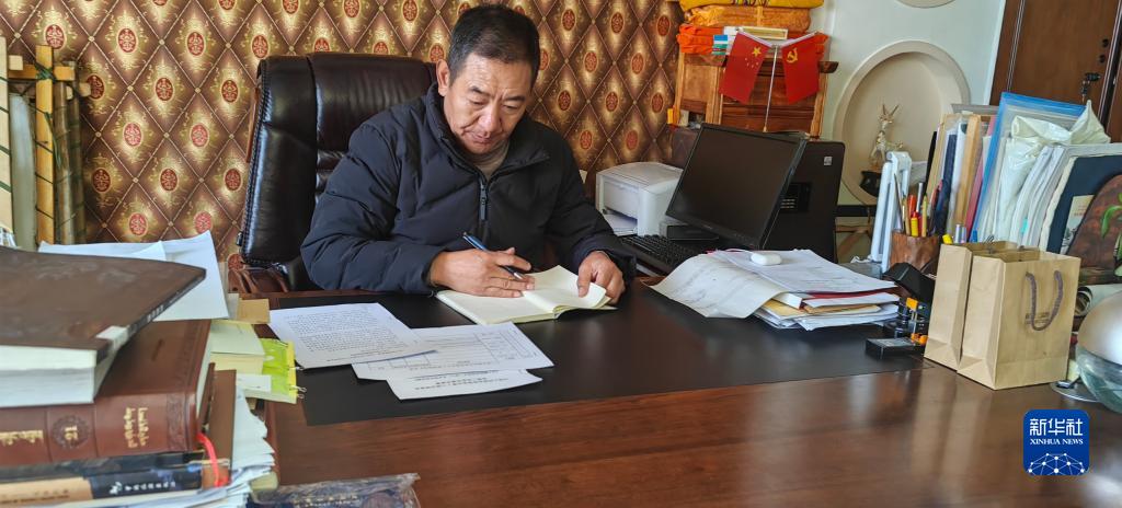 羅布斯達在整理調(diào)研筆記。 新華社記者 范帆 攝