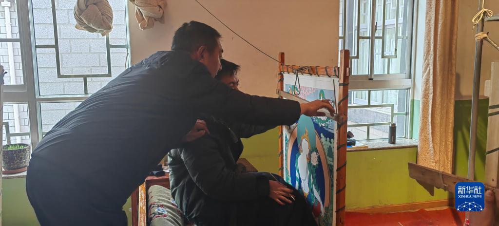 羅布斯達正在指導(dǎo)學(xué)生繪制唐卡。 新華社記者 范帆 攝
