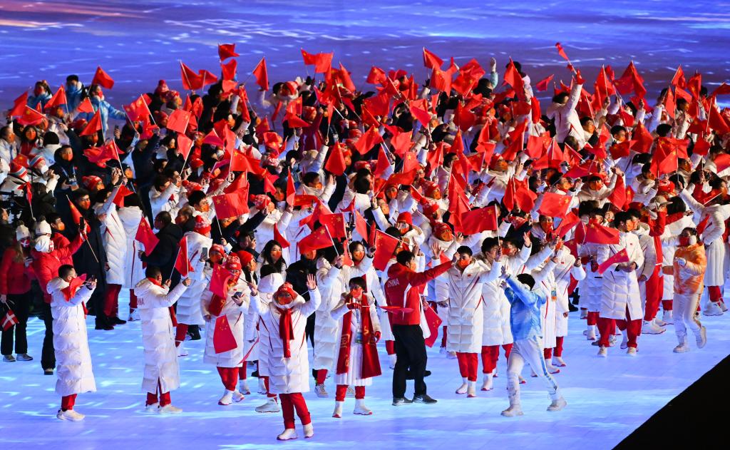 2月20日晚,北京第二十四屆冬季奧林匹克運(yùn)動(dòng)會(huì)閉幕式上中國代表團(tuán)成員入場(chǎng)。新華社記者 熊琦 攝