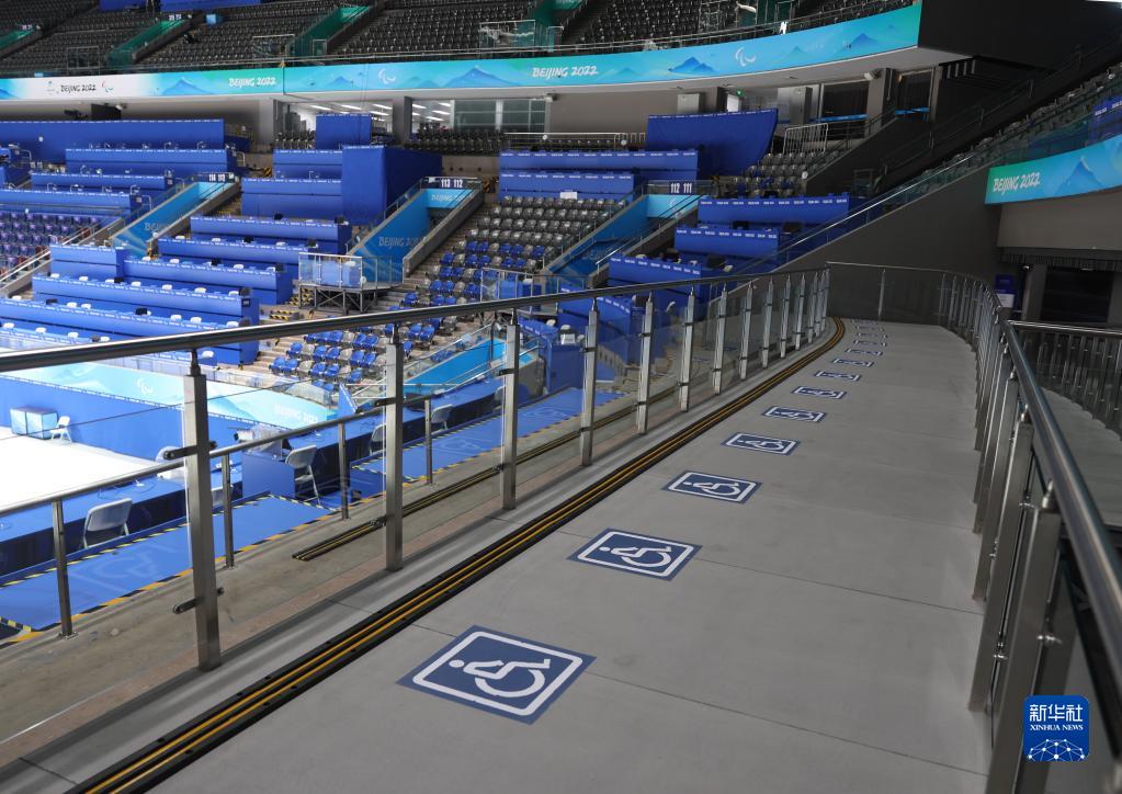 國(guó)家體育館看臺(tái)席的無(wú)障礙坐席(3月1日攝)。新華社發(fā)(胡星宇攝)