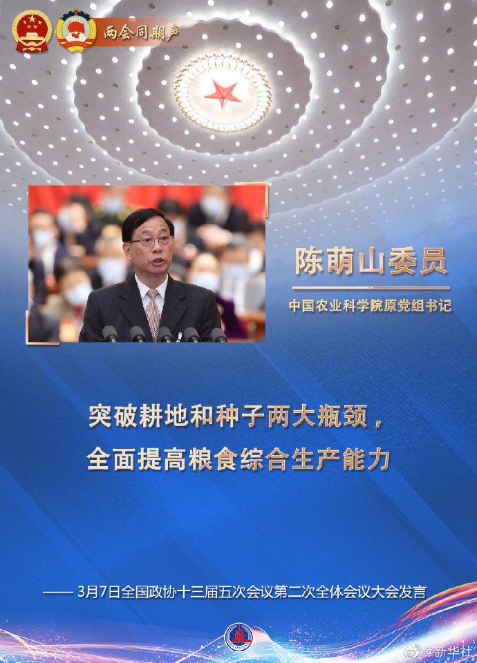 7日上午,全國政協(xié)十三屆五次會議舉行第二次全體會議。12名委員作大會發(fā)言。陳萌山委員發(fā)言。