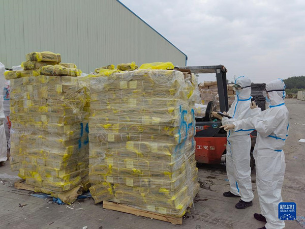中國海警局直屬第二局執(zhí)法員對涉案凍品進行取樣檢測(2月12日攝)。新華社發(fā)(張淼 攝)