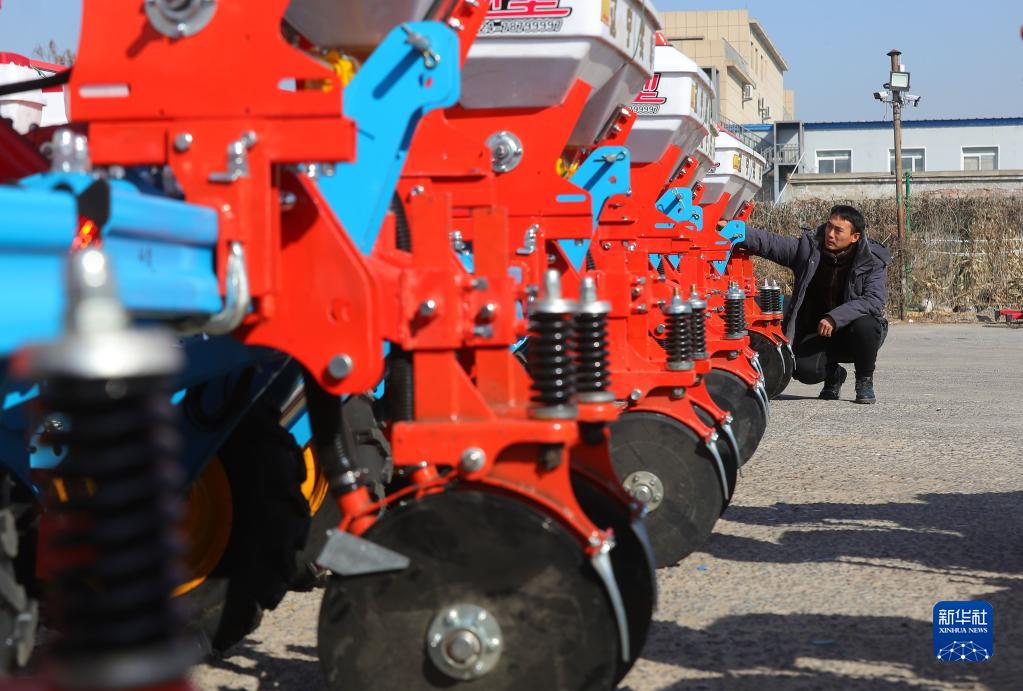 2月23日,在遼寧省鐵嶺縣遼寧實豐機(jī)械有限公司,工人檢查即將出廠的玉米播種機(jī)。新華社記者 楊青 攝