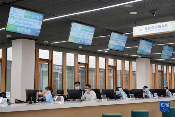 工作人員在雄安新區(qū)政務(wù)服務(wù)中心工作(2021年3月16日攝)。新華社記者 牟宇 攝