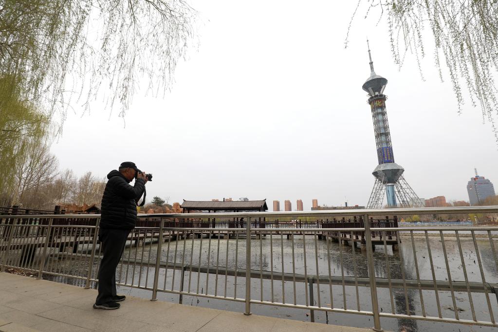 3月18日,王汝春在石家莊市裕華區(qū)世紀(jì)公園拍照。(受訪者供圖)