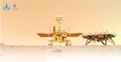 祝融號(hào)火星車拍攝的“著巡合影”圖。