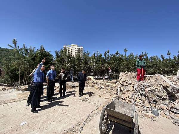 圖為陜西省、市、縣三級檢察機關查看延安市志丹縣檢察院辦理的保安革命舊址違建拆除案整改現(xiàn)場。 段曉瑞 攝