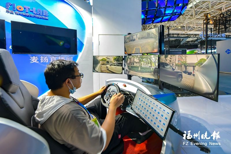 在國家物聯網產業(yè)示范基地——中國·馬尾展區(qū),記者體驗了一把遠程駕駛。