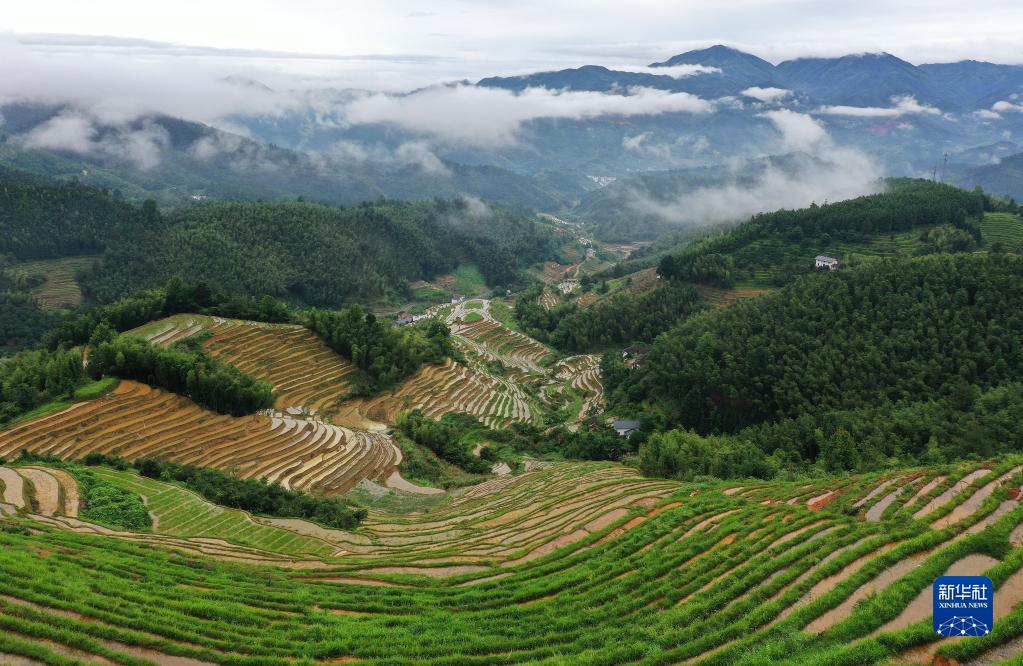 這是江西省贛州市崇義縣上堡梯田(2022年6月16日攝,無人機照片)。新華社記者 萬象 攝