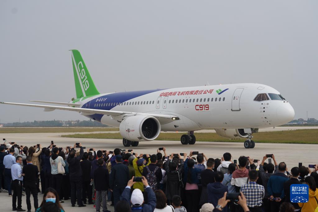 在2020南昌飛行大會上,國產(chǎn)大飛機C919亮相江西南昌瑤湖機場并進行飛行表演(2020年10月31日攝)。新華社記者 周密 攝