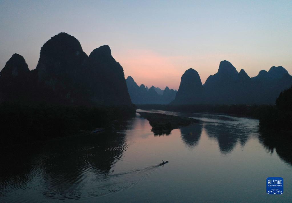 這是在廣西陽朔縣興坪鎮(zhèn)拍攝的漓江風(fēng)光(2020年5月19日攝,無人機照片)。新華社記者 周華 攝