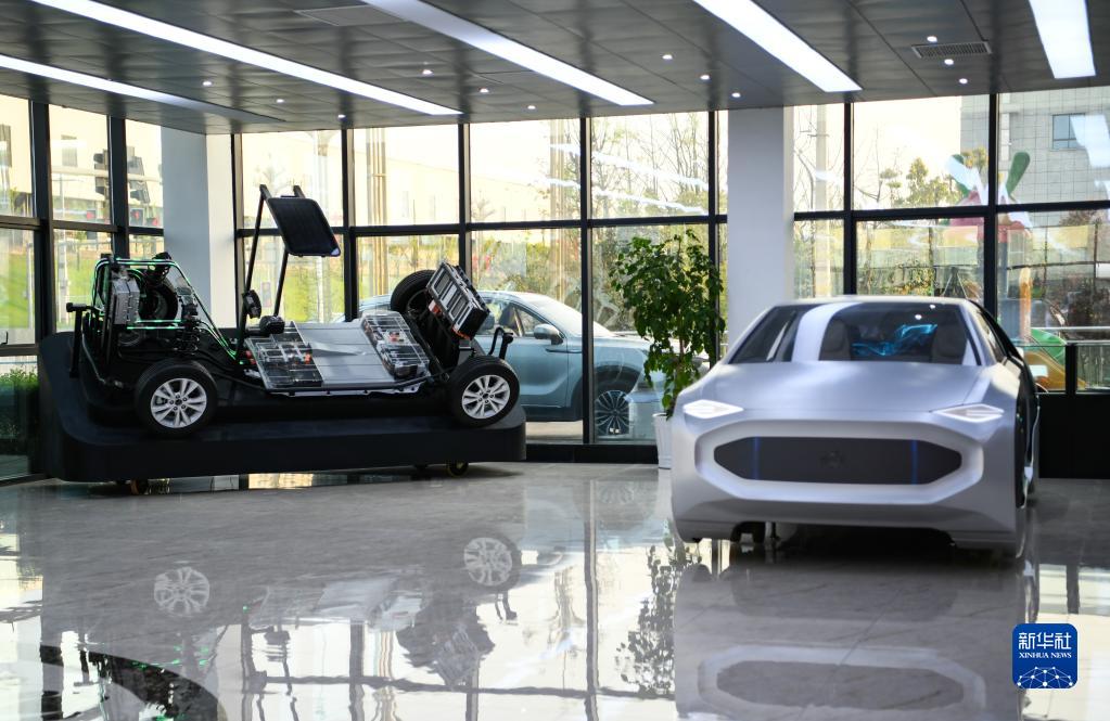在四川省廣安市鄰水縣川渝高竹新區(qū)一家企業(yè)展廳內(nèi)拍攝的展車(chē)(2021年3月24日攝)。新華社記者 王曦 攝