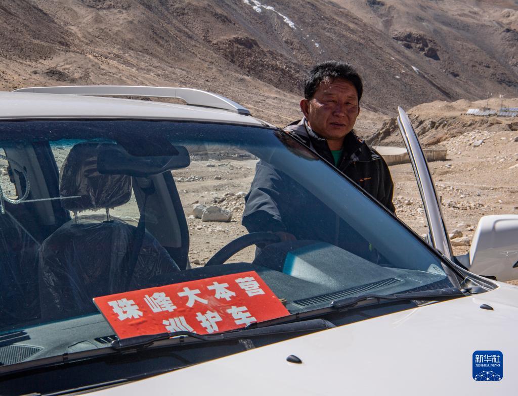 拉巴次仁駕駛巡護車在珠穆朗瑪峰國家級自然保護區(qū)內巡邏(2020年5月15日攝)。新華社記者 孫非 攝