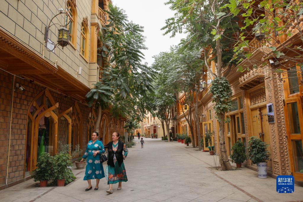 這是在新疆和田市拍攝的由北京市援疆資金支持改造的團城(2019年8月1日攝)。為改善居住環(huán)境,保持和田歷史文化街區(qū)風貌,當地利用北京市援疆資金,對和田老城區(qū)進行保護、安居、旅游與就業(yè)四位一體的改造。新華社發(fā)(許珠珠 攝)