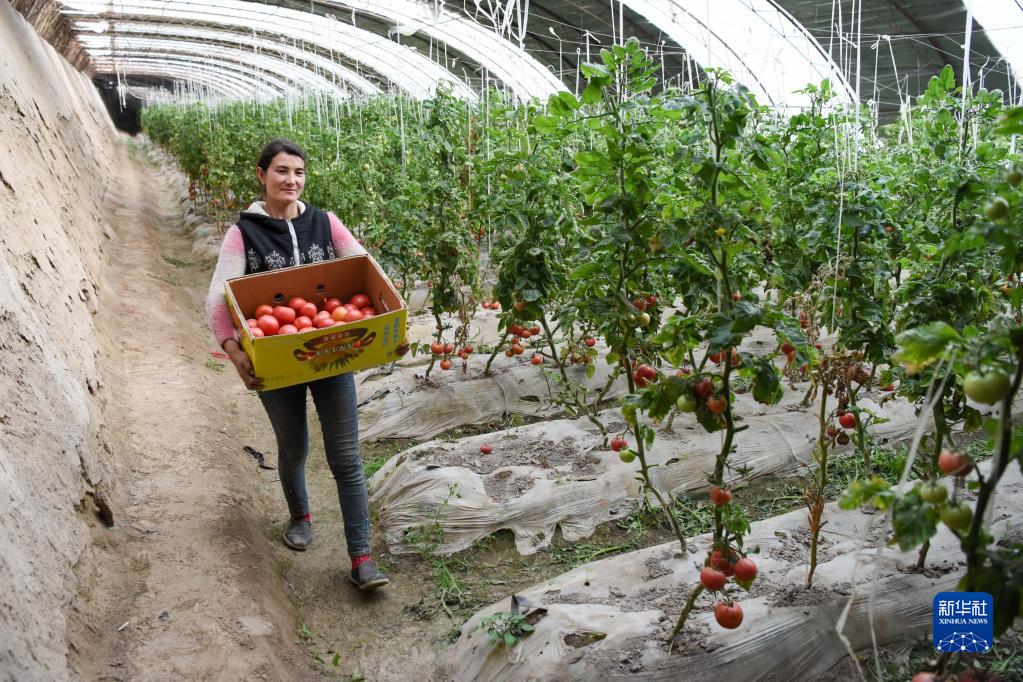 在新疆莎車縣伊什庫力鄉(xiāng)設施農業(yè)基地,種植戶搬運剛采摘的西紅柿(2020年3月18日攝)。該設施農業(yè)基地是在上海援疆莎車分指揮部協調推動下建立的。新華社記者 丁磊 攝