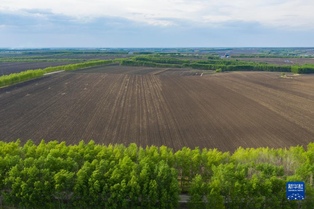 黑龍江省海倫市前進(jìn)鎮(zhèn)光榮村已完成播種的黑土耕地(2022年5月23日攝,無人機照片)。新華社記者 謝劍飛 攝