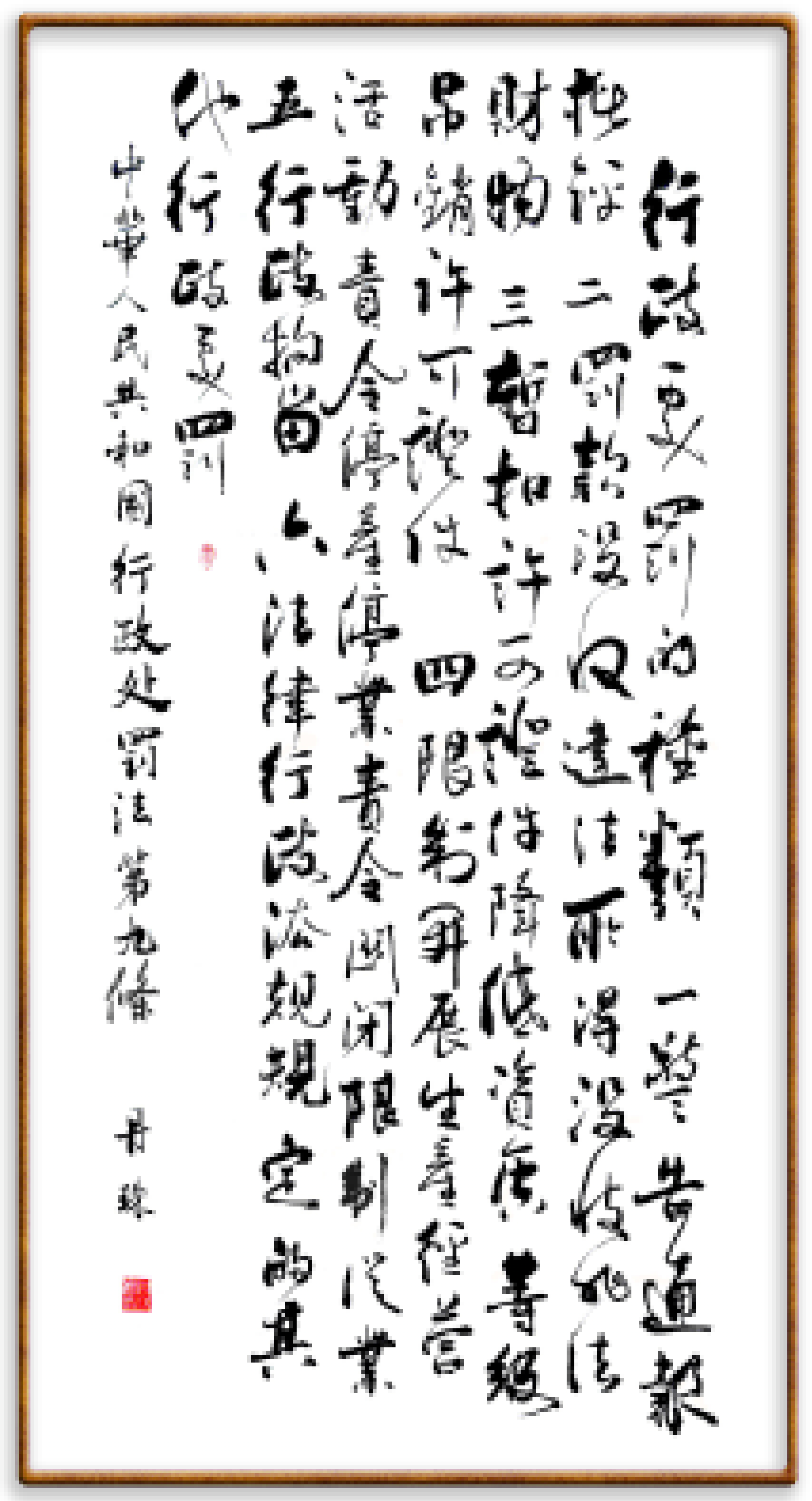 繼《中華人民共和國(guó)民法典》《中華人民共和國(guó)土地管理法》《中華人民共和國(guó)土地管理法實(shí)施條例》《中華人民共和國(guó)法律援助法》之后,法治日?qǐng)?bào)社聯(lián)合北京市司法局、北京市書法家協(xié)會(huì),將筆端對(duì)準(zhǔn)《中華人民共和國(guó)憲法》和《中華人民共和國(guó)行政處罰法》。