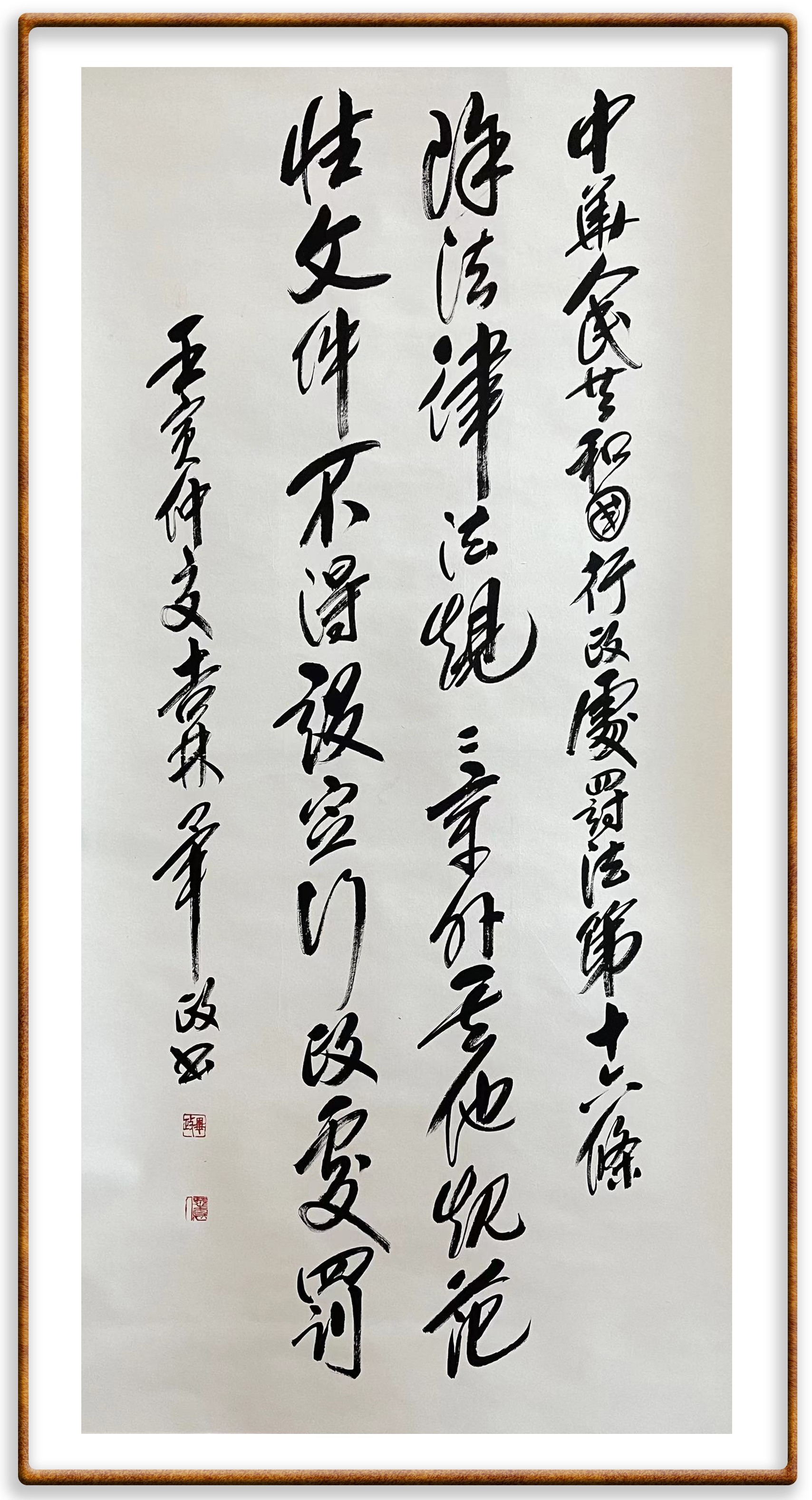 繼《中華人民共和國民法典》《中華人民共和國土地管理法》《中華人民共和國土地管理法實(shí)施條例》《中華人民共和國法律援助法》之后,法治日?qǐng)?bào)社聯(lián)合北京市司法局、北京市書法家協(xié)會(huì),將筆端對(duì)準(zhǔn)《中華人民共和國憲法》和《中華人民共和國行政處罰法》。