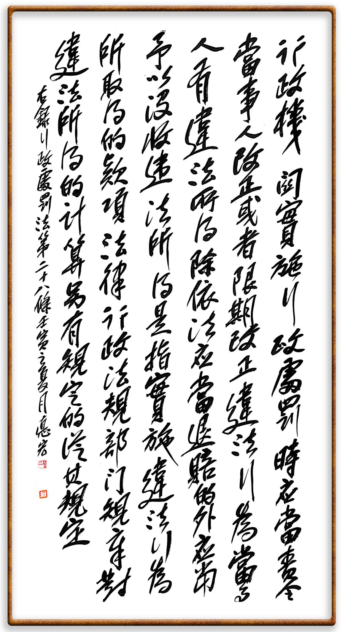 繼《中華人民共和國(guó)民法典》《中華人民共和國(guó)土地管理法》《中華人民共和國(guó)土地管理法實(shí)施條例》《中華人民共和國(guó)法律援助法》之后,法治日?qǐng)?bào)社聯(lián)合北京市司法局、北京市書法家協(xié)會(huì),將筆端對(duì)準(zhǔn)《中華人民共和國(guó)憲法》和《中華人民共和國(guó)行政處罰法》。