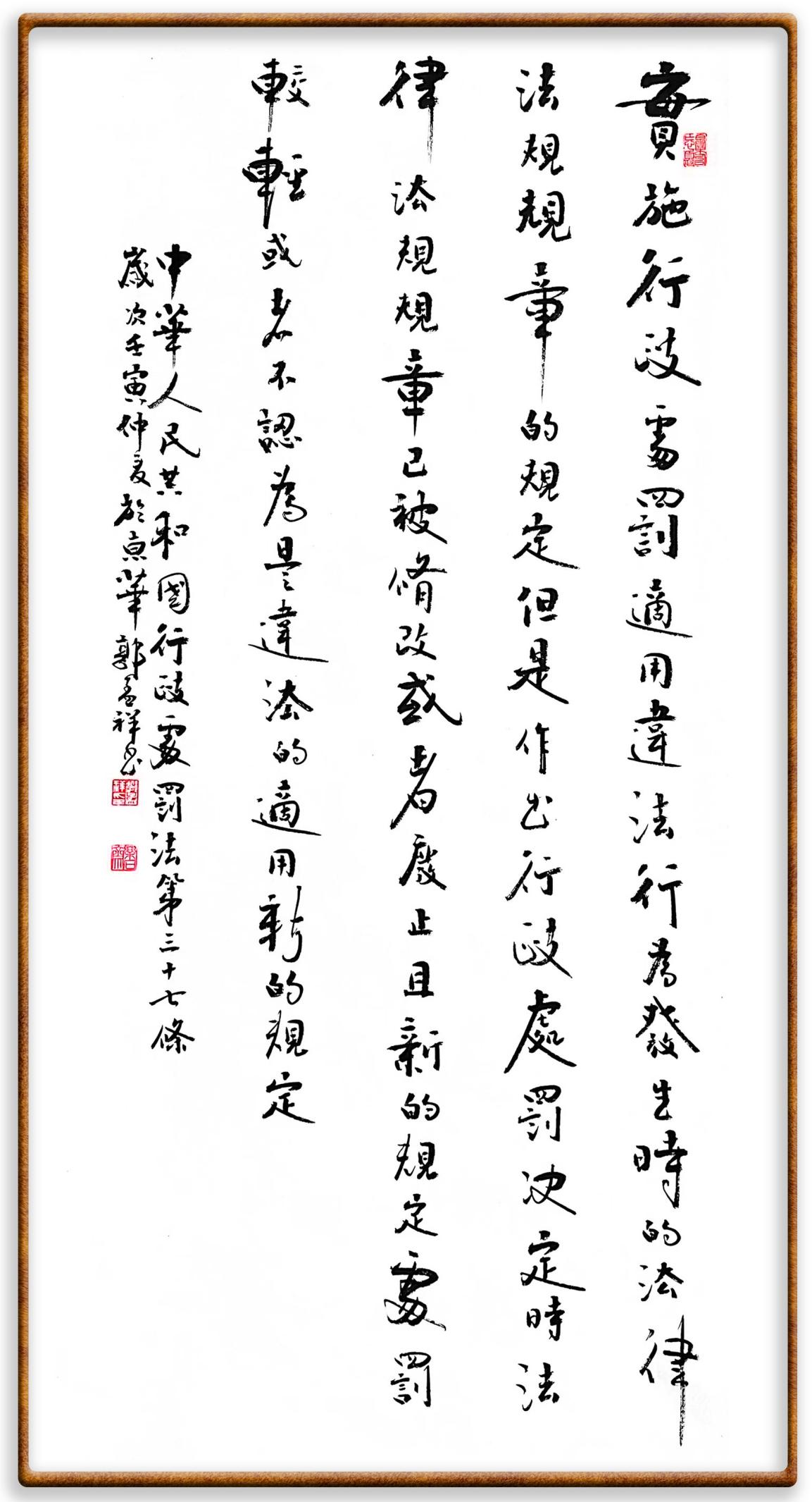 繼《中華人民共和國(guó)民法典》《中華人民共和國(guó)土地管理法》《中華人民共和國(guó)土地管理法實(shí)施條例》《中華人民共和國(guó)法律援助法》之后,法治日?qǐng)?bào)社聯(lián)合北京市司法局、北京市書(shū)法家協(xié)會(huì),將筆端對(duì)準(zhǔn)《中華人民共和國(guó)憲法》和《中華人民共和國(guó)行政處罰法》。