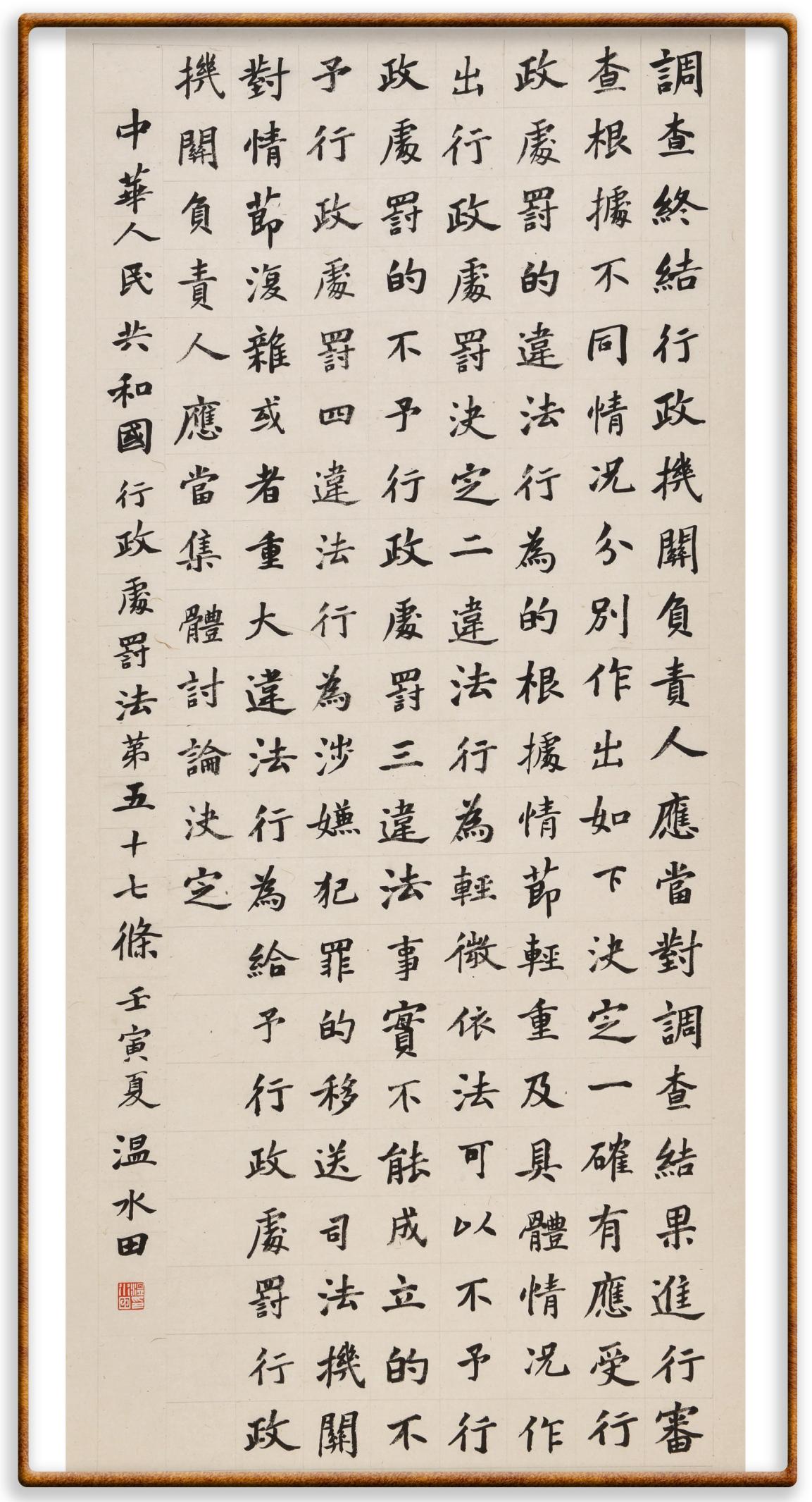 繼《中華人民共和國民法典》《中華人民共和國土地管理法》《中華人民共和國土地管理法實施條例》《中華人民共和國法律援助法》之后,法治日報社聯(lián)合北京市司法局、北京書法家協(xié)會,將筆端對準(zhǔn)《中華人民共和國憲法》和《中華人民共和國行政處罰法》。
