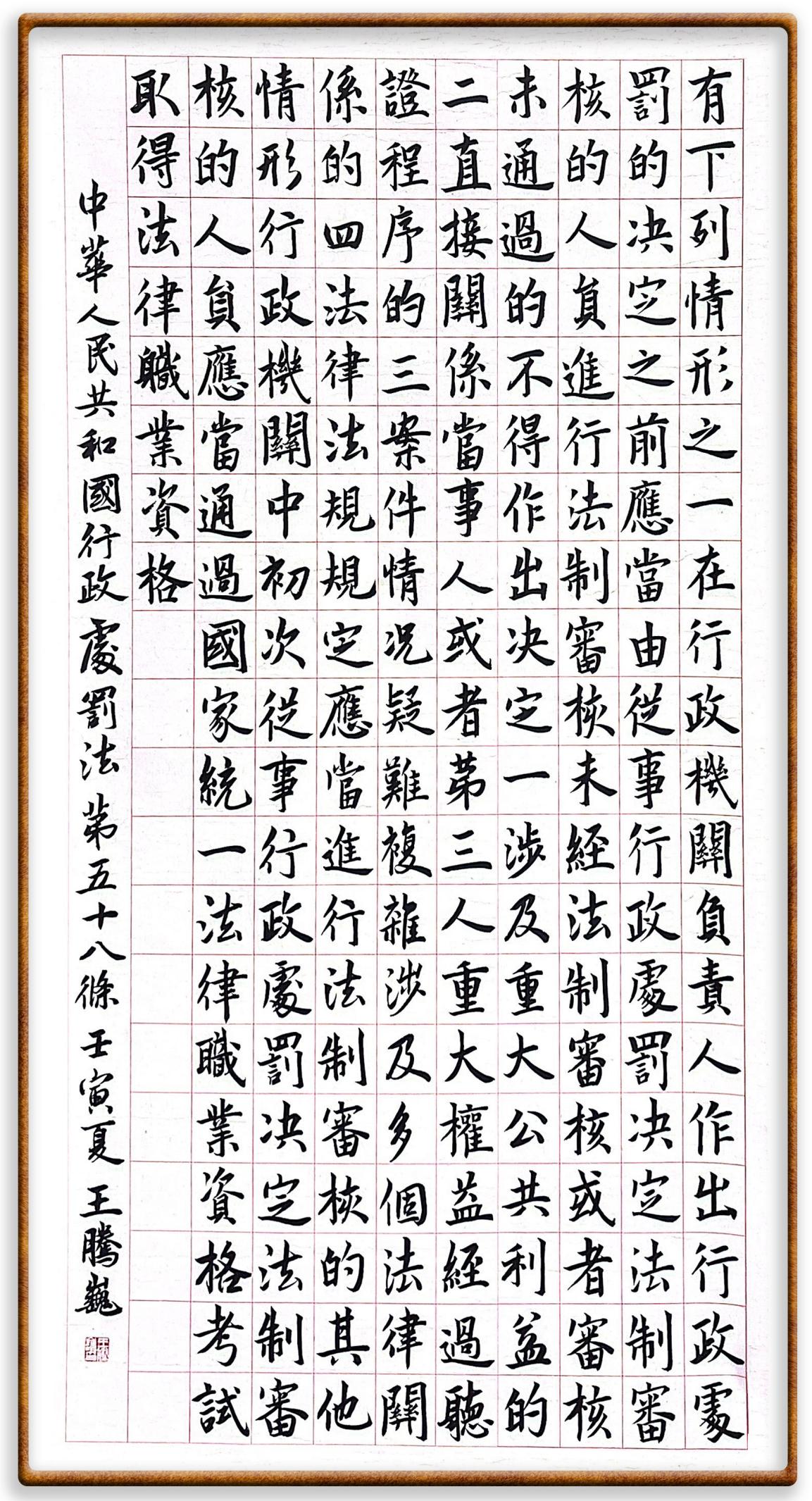 繼《中華人民共和國民法典》《中華人民共和國土地管理法》《中華人民共和國土地管理法實(shí)施條例》《中華人民共和國法律援助法》之后,法治日報(bào)社聯(lián)合北京市司法局、北京書法家協(xié)會(huì),將筆端對準(zhǔn)《中華人民共和國憲法》和《中華人民共和國行政處罰法》。