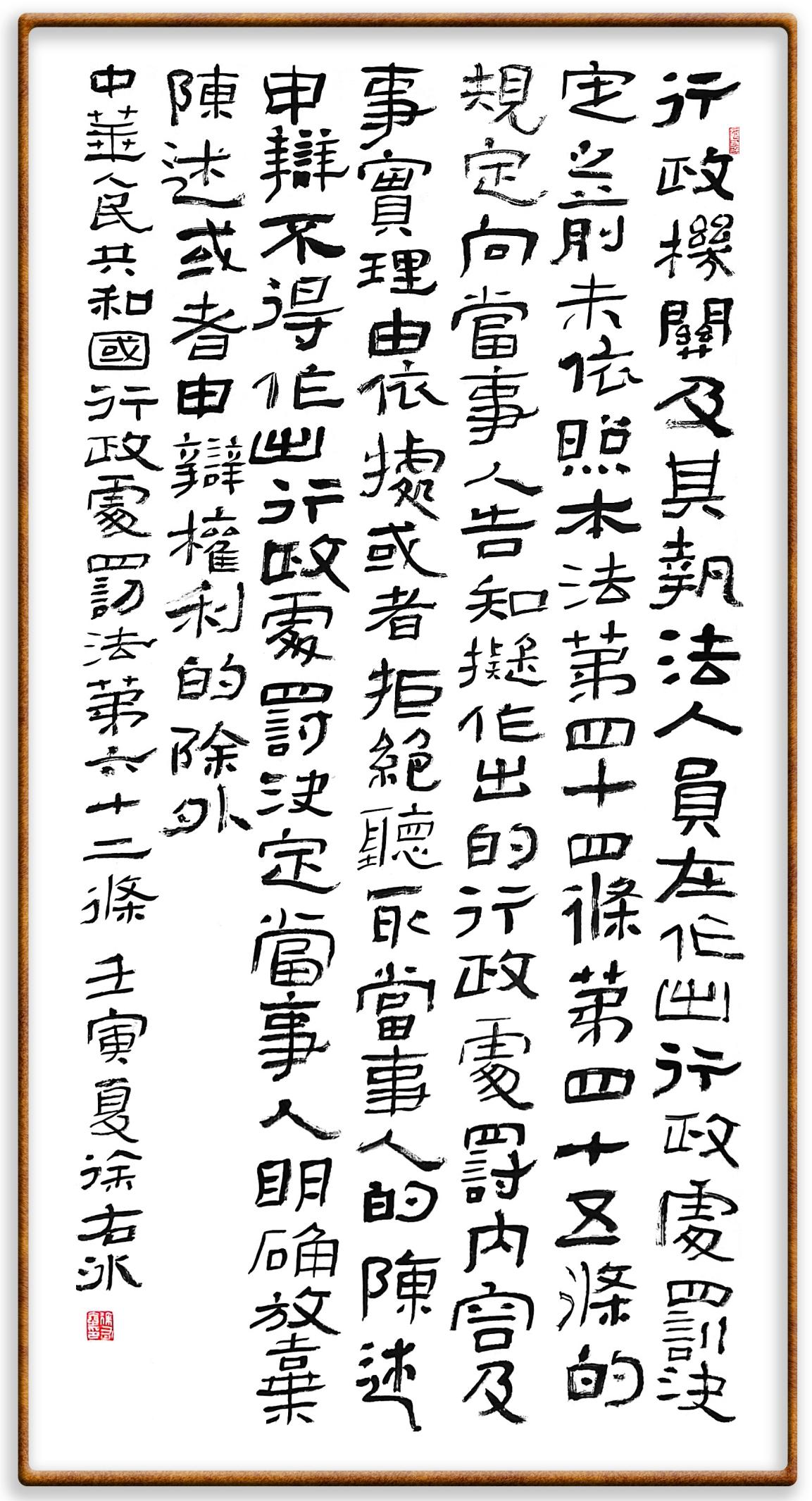 繼《中華人民共和國民法典》《中華人民共和國土地管理法》《中華人民共和國土地管理法實施條例》《中華人民共和國法律援助法》之后,法治日報社聯(lián)合北京市司法局、北京書法家協(xié)會,將筆端對準(zhǔn)《中華人民共和國憲法》和《中華人民共和國行政處罰法》。