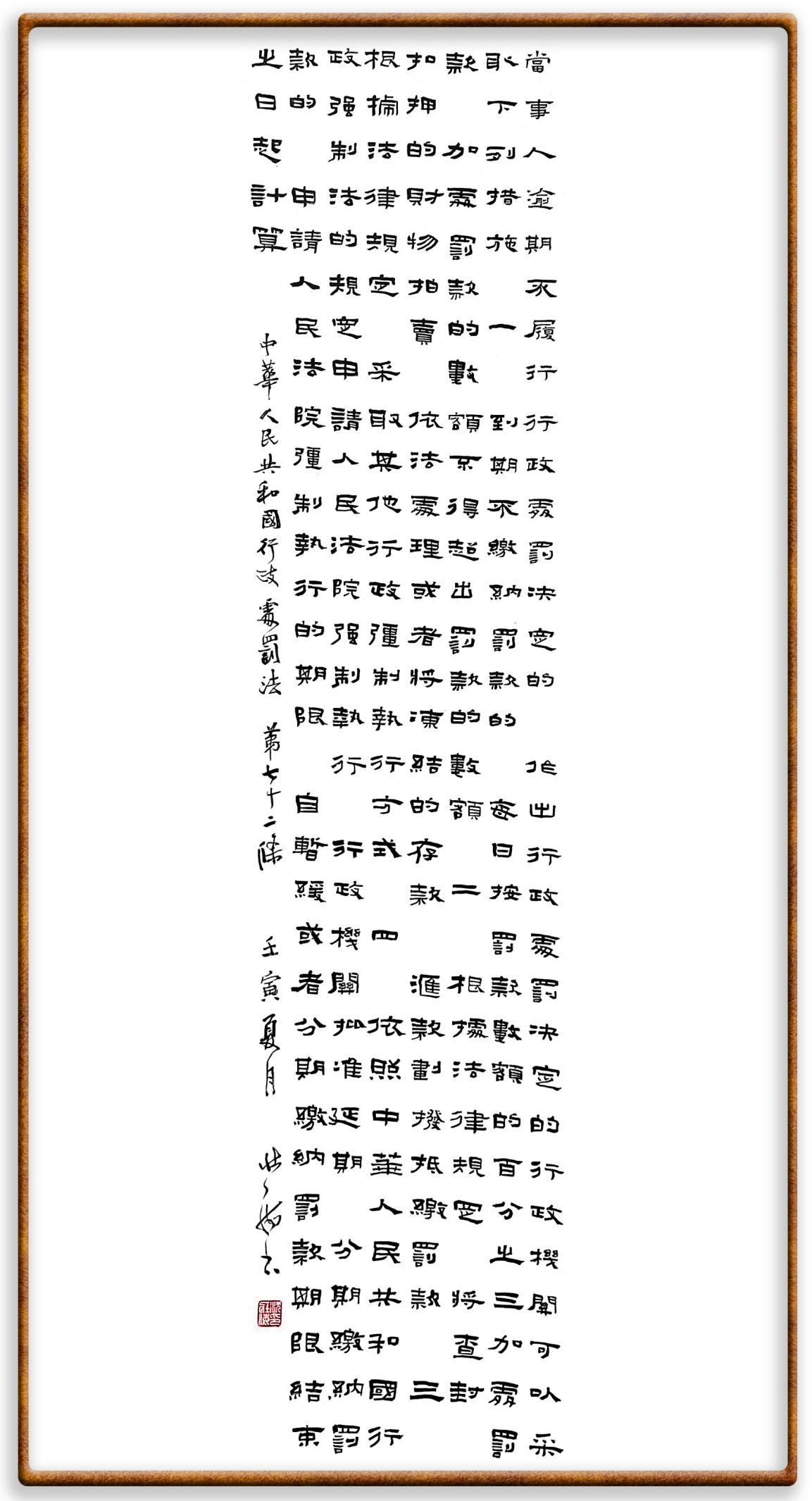 繼《中華人民共和國(guó)民法典》《中華人民共和國(guó)土地管理法》《中華人民共和國(guó)土地管理法實(shí)施條例》《中華人民共和國(guó)法律援助法》之后,法治日?qǐng)?bào)社聯(lián)合北京市司法局、北京書(shū)法家協(xié)會(huì),將筆端對(duì)準(zhǔn)《中華人民共和國(guó)憲法》和《中華人民共和國(guó)行政處罰法》。