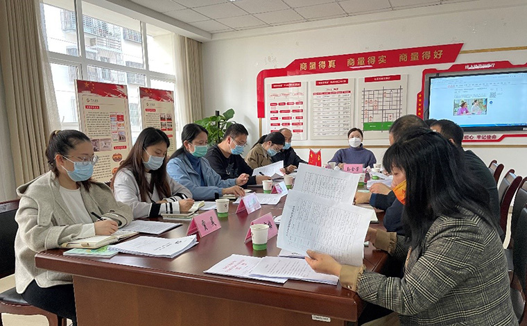 圖為合肥市包河區(qū)方興社區(qū)協(xié)商議事廳里相關(guān)工作人員正在進(jìn)行問題討論。