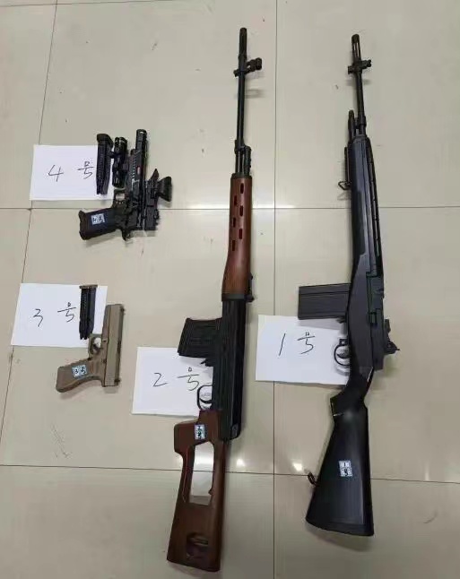 民警經(jīng)過細(xì)致研判及摸排走訪,最終鎖定犯罪嫌疑人為趙某某,并在鐵西區(qū)興順街南十二路附近某小區(qū)將其抓獲,當(dāng)場(chǎng)查獲仿真槍4支。后經(jīng)鑒定,其中2支以氣體為發(fā)射動(dòng)力,認(rèn)定為槍支。