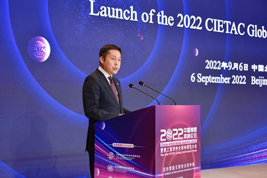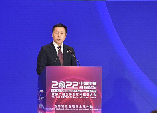 (貿(mào)仲副主任兼秘書長王承杰主持《2022貿(mào)仲全球仲裁員倡議》發(fā)布儀式)